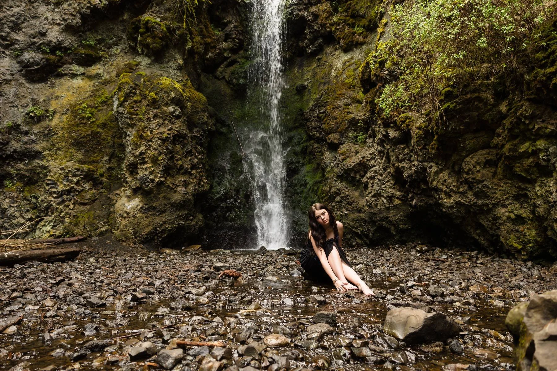 Soft, immersive frames—barefoot near clear shallows, fabric that welcomes a little damp at the hem, hands grazing leaves. I love slow shutter accents on water movement, then one crisp portrait anchored by a simple pose so the environment can breathe around you.