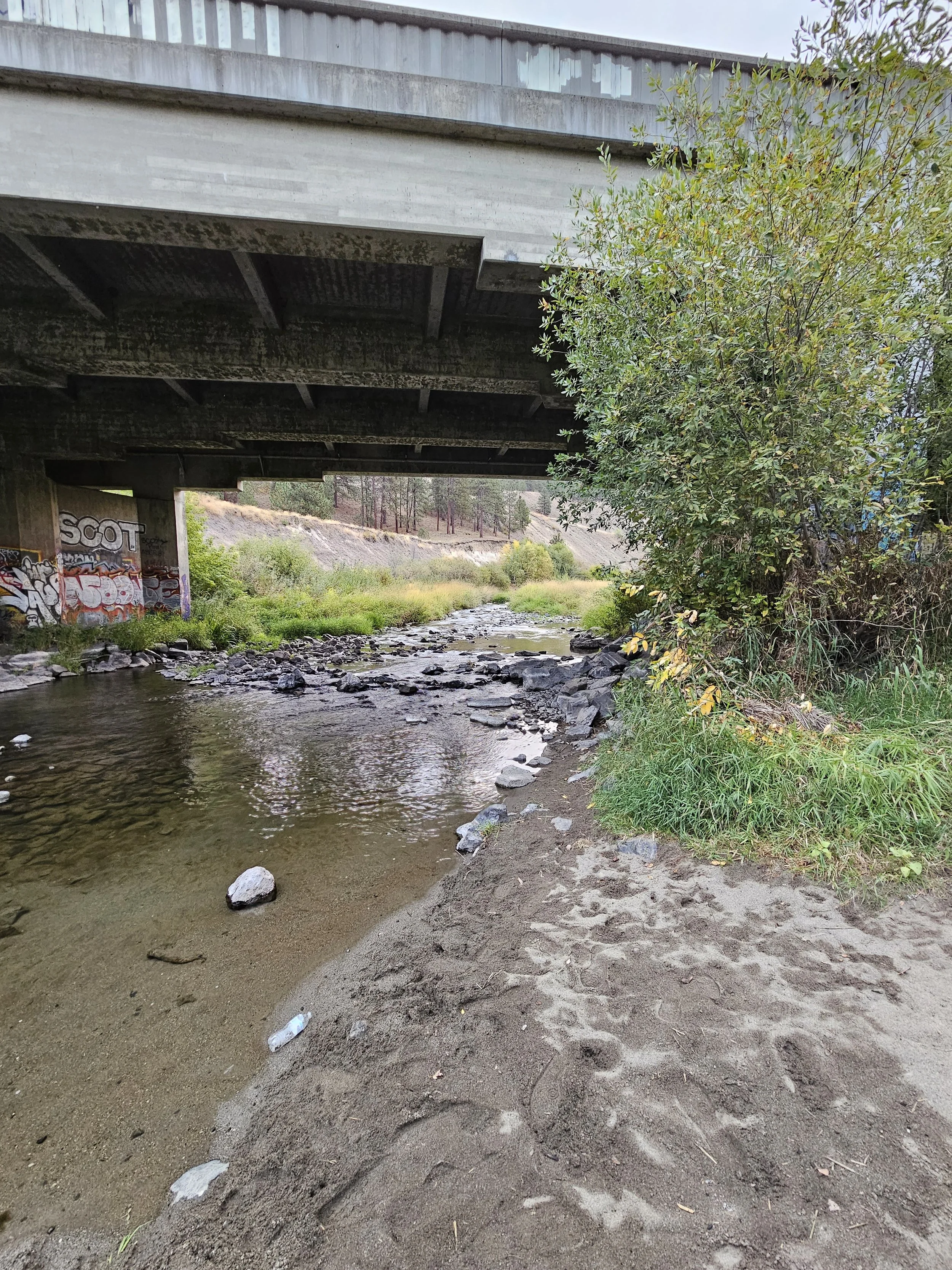 4) Under the S. Inland Empire Way Bridge (Grant Park Area) — Creek + Texture + Caution