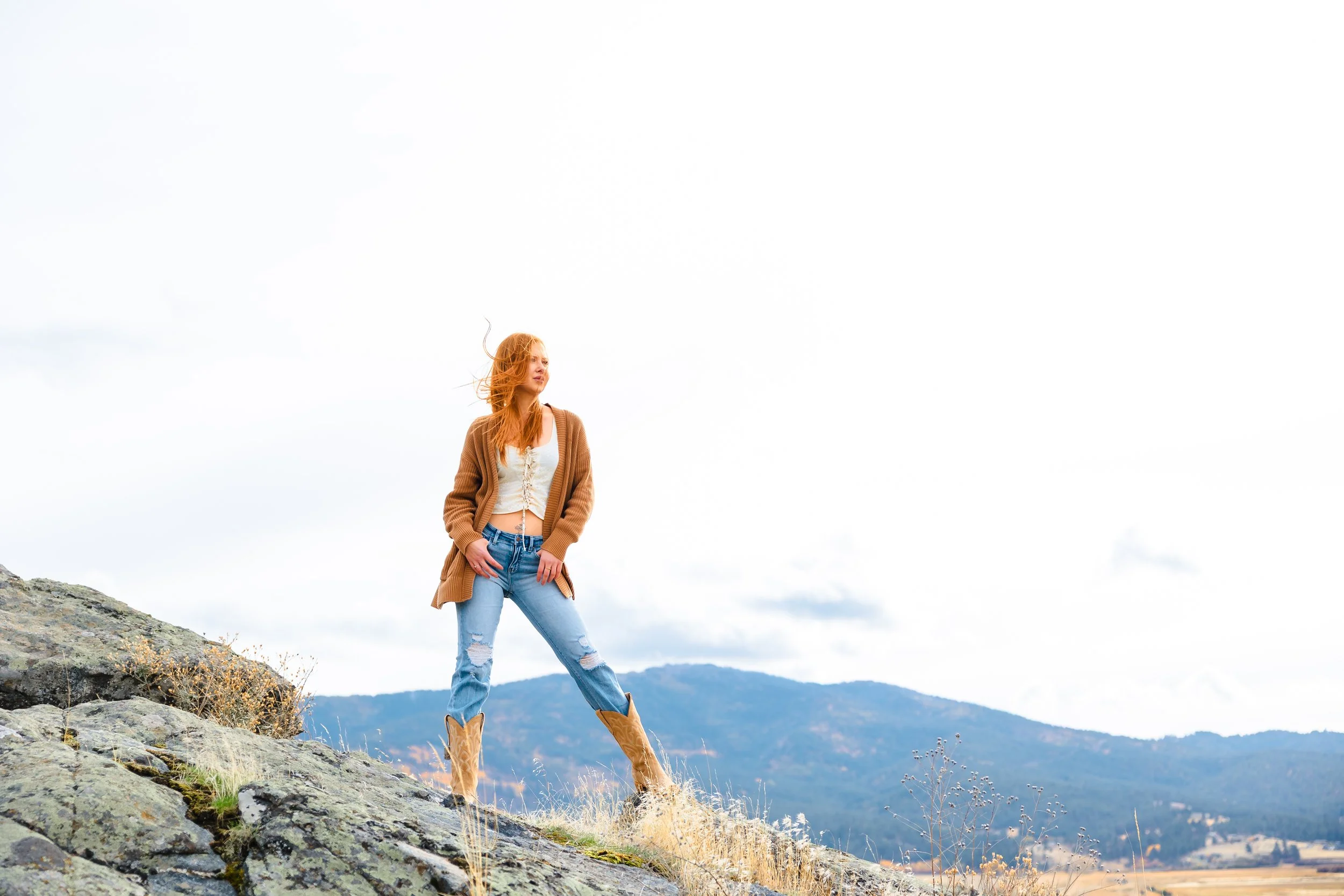 This is a place for strong silhouettes and grounded movement—hands on sun-warmed granite, boots steady on the trail, fabric that lifts slightly when the wind pushes through. I love pairing rugged textures (denim, leather, canvas) with softer elements (linen, flowing dresses) to balance grit and grace. Golden hour paints the Palouse in honeyed light; blue hour cools everything into cinematic calm.