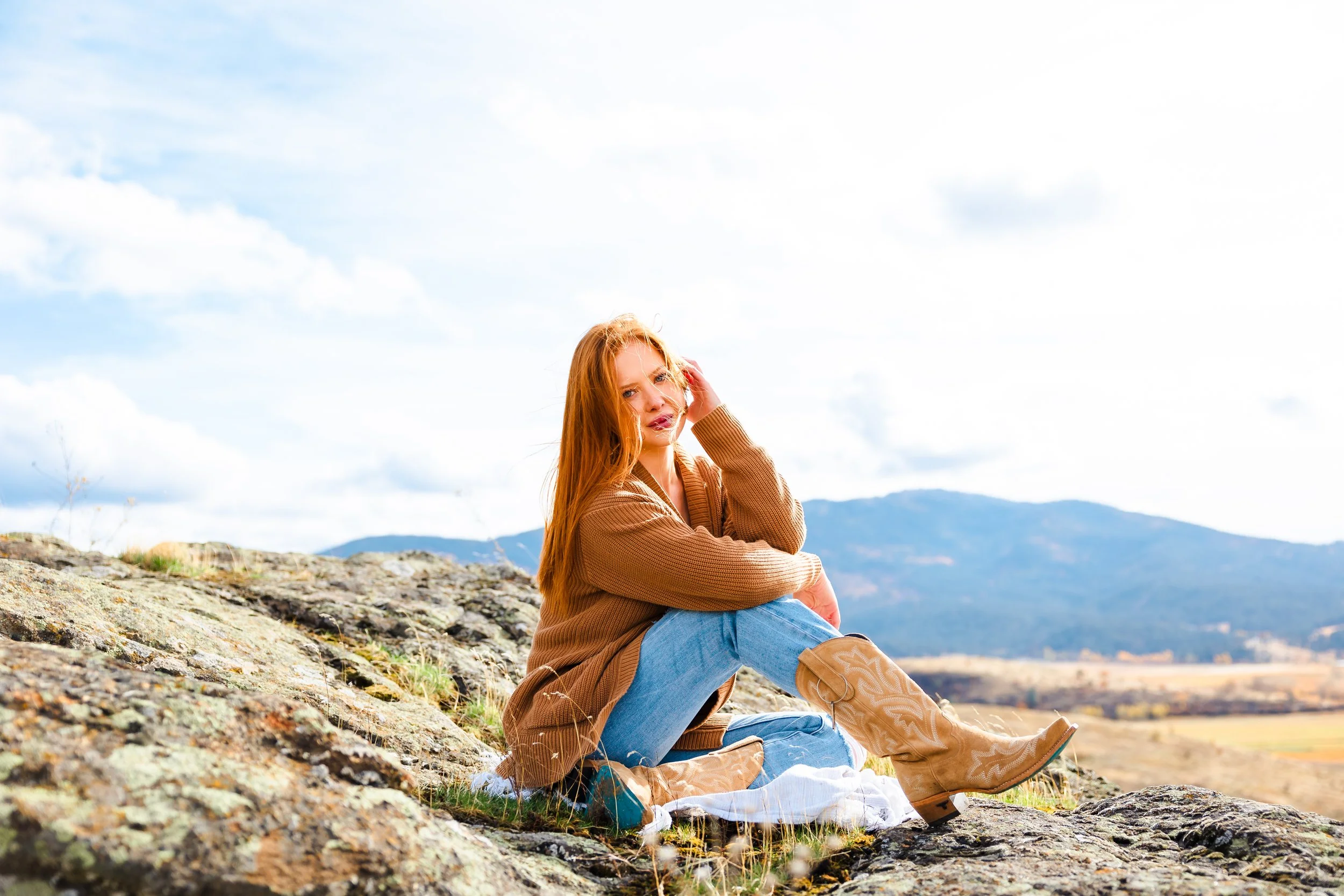 The travel‑style images where someone is standing in soft golden light, wrapped in a blanket on a deck with a mountain view, sipping something warm by the fire, or wandering through nature like they’re inside a story.